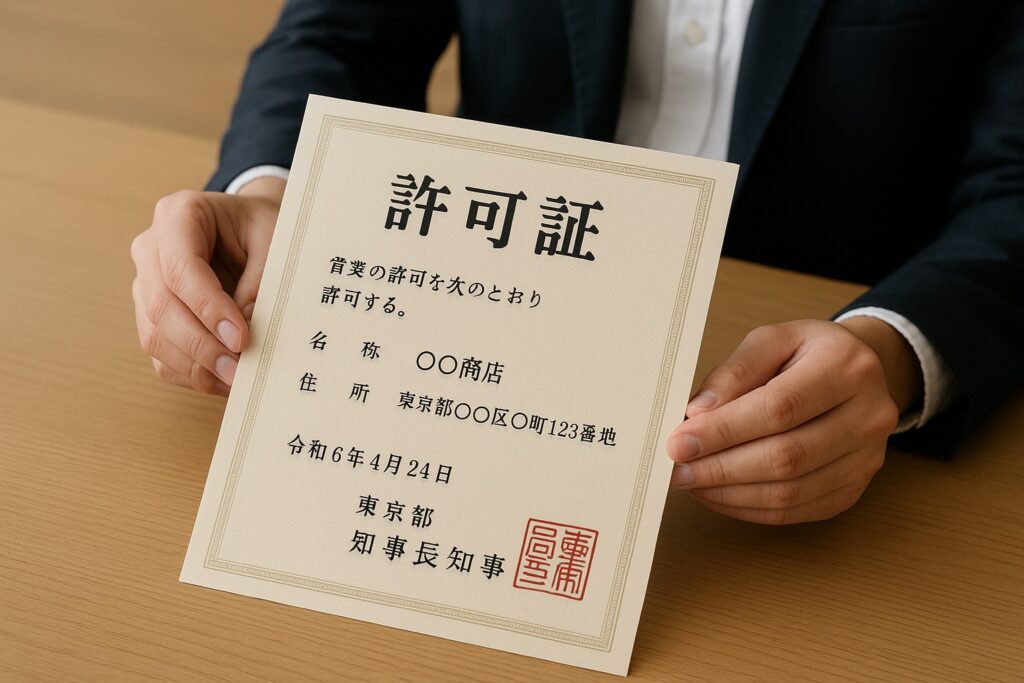 許可が下りると許可証が交付されますので、営業施設の見やすい場所に掲示してください。