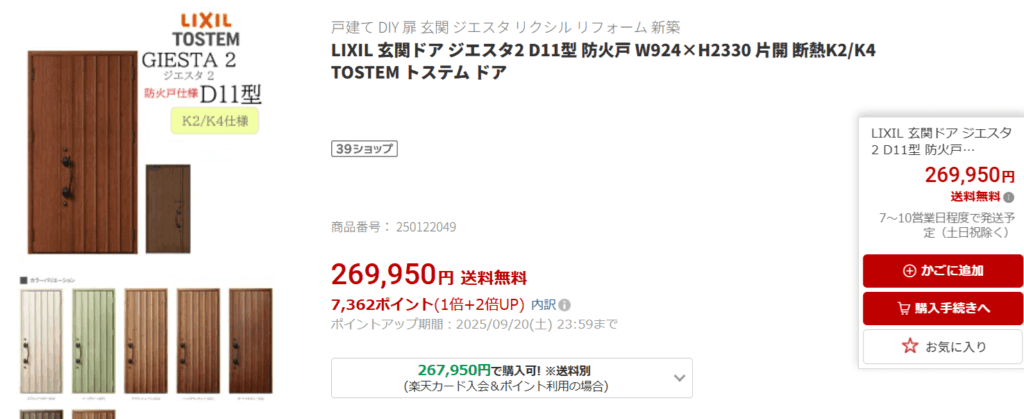 楽天の通販サイトで「防火戸」と検索すると商品が出てきました。